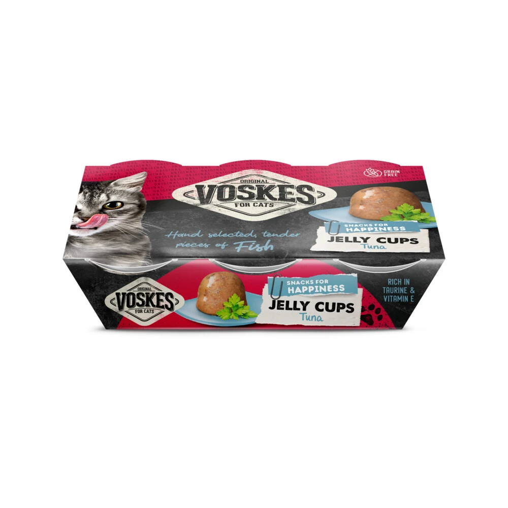 Voskes Tender PiecesDe heerlijke tender pieces van Voskes zijn een ware delicatesse voor je kat. Je kat krijgt 6 heerlijke cups vol met verse en hoogwaardige ingrediënten. De cups zijn een ideaal tussendoortje voor je kat waar hij of zij echt van zal genieten. De cups zijn makkelijk te serveren.Met omega 3 en 6Rijk aan vitamine D en EGraan- en glutenvrij