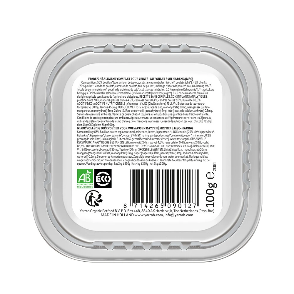 Yarrah Bio Kattenvoer Chunks VisYarrah Biologisch Kattenvoer Chunks Vis zijn overheerlijke, graanvrije chunks met MSC-vis, aangevuld met biologisch gecertificeerde spirulina. Geschikt voor alle kattensoorten en leeftijden, van kittens tot senior katten. Het biologische natvoer vormt een complete, voedzame en zeer smakelijke maaltijd voor je kat. Dit 100 grams alu-kuipje bevat MSC-haring. MSC-haring is rijk aan omega-3 en -6 vetzuren, heeft een ontstekingsremmend effect op vacht en huid en helpt