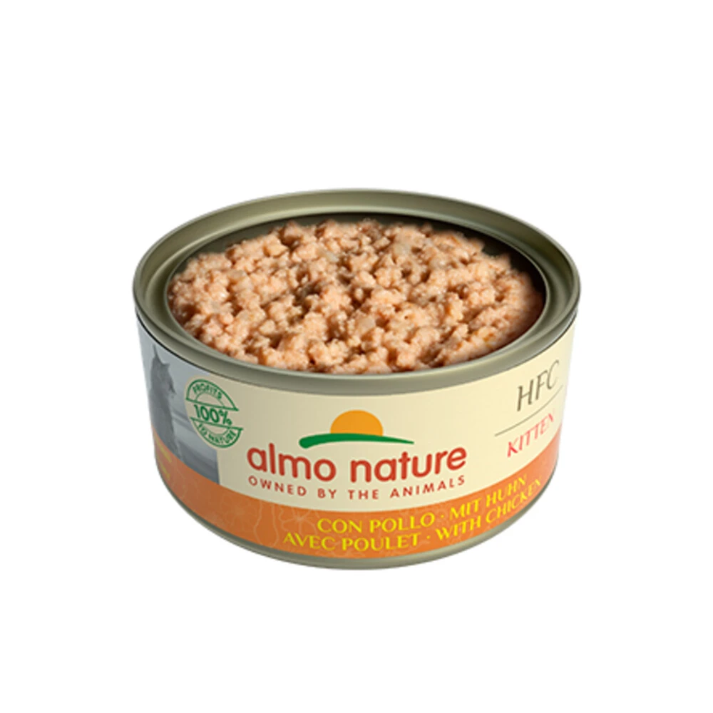 Almo Nature HFC Kitten Kattenvoer KipHet kittenvoer van Almo Nature is 100% HFC.Het kittenvoer van Almo Nature bevat vers 100% HFC kippenvlees. HFC kippenvlees is vlees waarbij geen gebruik is gemaakt van antibiotica en hormonen tijdens het fokken. Het vlees dat is verwerkt in deze voeding bevat ook geen slachtafval en is oorspronkelijk goedgekeurd voor menselijke consumptie.Met deze gegevens weet je zeker dat je kitten alleen hoogwaardig vlees binnenkrijgt van de beste kwalliteit. Het vlees is