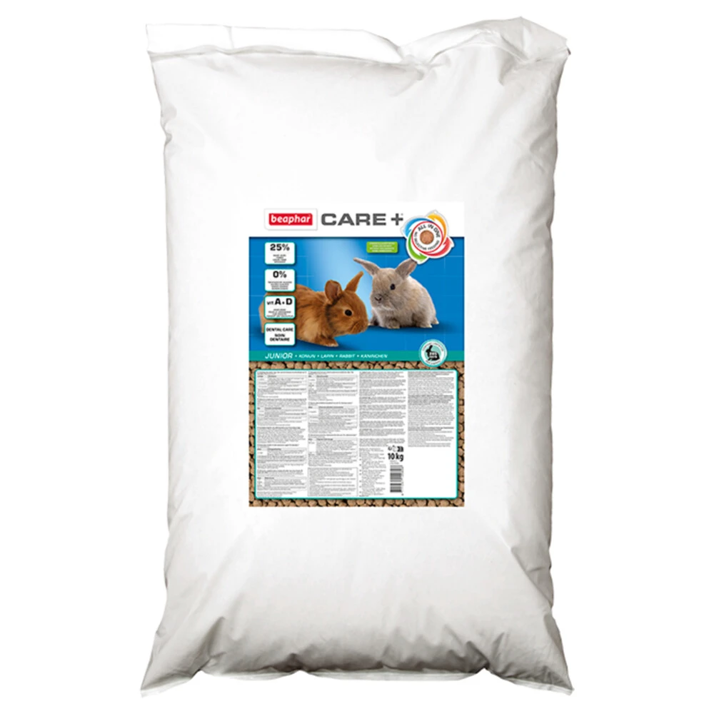 Beaphar Care+ Junior Konijn 10 KgBeaphar Care+ Junior heeft een hoog vezelgehalte (25%) voor een goede gezondheid en een optimale spijsvertering. Ieder brokje heeft dezelfde samenstelling wat belangrijk is voor een uitgebalanceerde voeding. De hardere geëxtrudeerde brokjes bevorderen de slijtage van de tanden. Bevat groene thee extract dat het immuunsysteem stimuleert en ondersteunt.Heeft een hoog vezelgehalte (25%) voor een goede gezondheidIeder brokje heeft dezelfde samenstellingBevordert