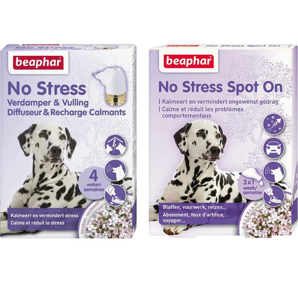 Beaphar No Stress Hond PakketHoud je hond in huis en buiten stress vrij met een rustgevende verdamper en een spot-on op basis van kruiden. De electrische Beaphar No Stress Verdamper verspreidt natuurlijke extracten van valeriaan die bekend staan om de kalmerende eigenschappen bij honden.De Beaphar No Stress Spot On vermindert de stress bij honden en houdt ze kalm door het rustgevend effect van het valeriaan extract. Dit extract is micro-ingekapseld waardoor het langzaam vrijkomt en langduri