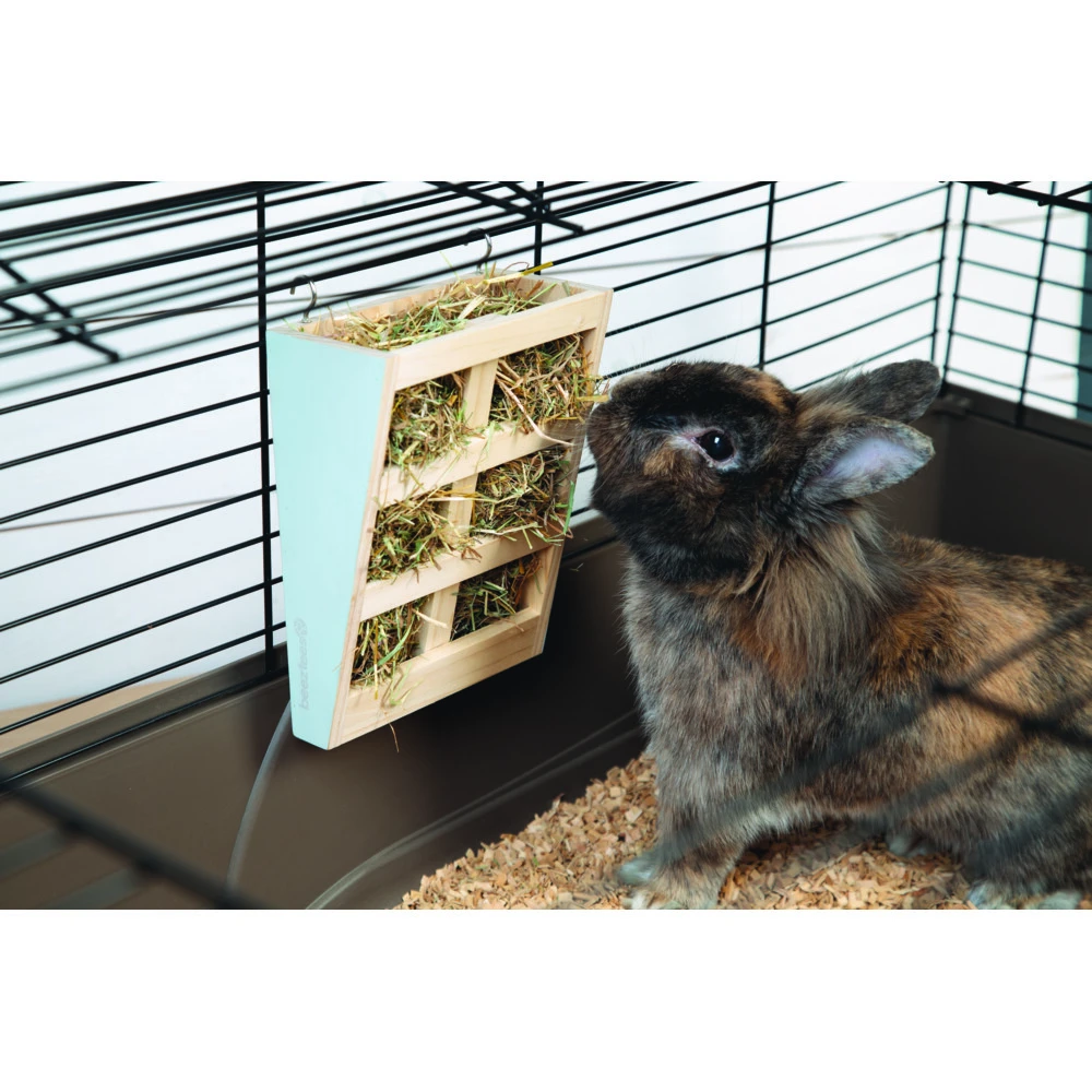 Beeztees Hooiruif Rima Hout Jouw knaagdier smult graag van vers hooi. Wanneer je hooi los in de kooi legt, gebruikt je eigenwijze pluizenbolletje het al snel als ligplek of ziet het als een geschikte plek om te plassen of te keutelen. Met de Beeztees Hooiruif Rima blijft het hooi veel langer goed. Doordat het hooi zit opgeslagen in de ruif kan jouw knaagdier er niet bovenop gaan liggen en blijft het langer fris. Je knaagdier trekt de plukken hooi zelf uit de hooiruif, zodat hij er lekker op
