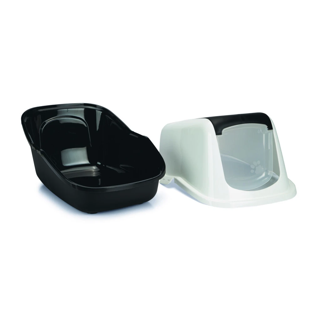 Beeztees Kattenbak Nestor Zwart – WitDe Beeztees Nestor Kattenbak is een mooi vormgegeven kattenbak. Bij deze kattenbak is het niet nodig om de gehele bovenkap te verwijderen als je het kattentoilet wilt schoonmaken. Je kunt namelijk het deurtje en het binnenste gedeelte van de bovenzijde in een handomdraai los maken om deze schoon te maken. Het los geklikte gedeelte kun je omhoog duwen, zodat je er gemakkelijker bij kunt.Makkelijk schoon te makenIn zwart/wit kleurMooi design