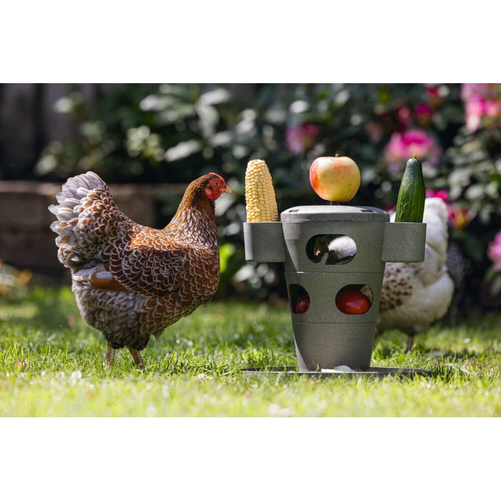 Beeztees Snacktoren Kippenvoerbak Grijs 30 cmMet deze Beeztees Kip Snacktoren kan je jouw kip voorzien van heerlijk vers kippenvoer en overheerlijke kippensnacks. Het is eigenlijk een deluxe kippenvoerbak, want je kan deze kippenvoerbak voor buiten gebruiken voor zowel kippenvoer– als snacks. Het voerbak gedeelte bevindt zich in de toren. In deze verschillende niveaus, die voorzien zijn van gaten, kan heerlijk kippenvoer worden gestopt. Bovenop de snacktoren bevindt zich een punt, waar je