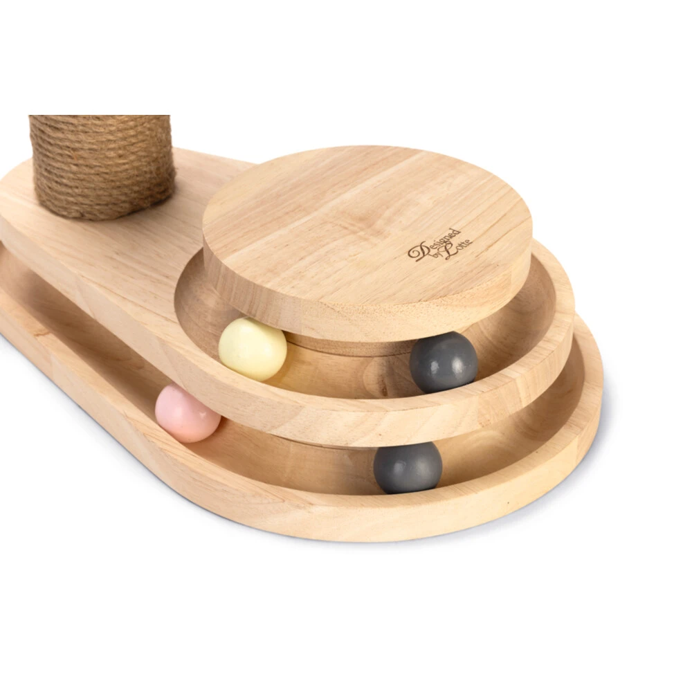 Designed by Lotte Krabpaal InezDe Designed by Lotte Krabpaal Inez is een multifunctionele krabpaal. Deze krabpaal heeft naast de gebruikelijke krabstam ook nog een leuke speeltoren aan de voet bevestigd. Deze speeltoren is voorzien van balletjes. Zodra jouw kat met zijn poot of snuit tegen de balletjes tikt, zullen deze alle kanten op rollen. Krabpaal Inez is gemaakt van rubberhout en heeft een stam welke omwikkeld is met jute touw. Jouw kat kan aan het jute touw heerlijk zijn nagels slijpen en