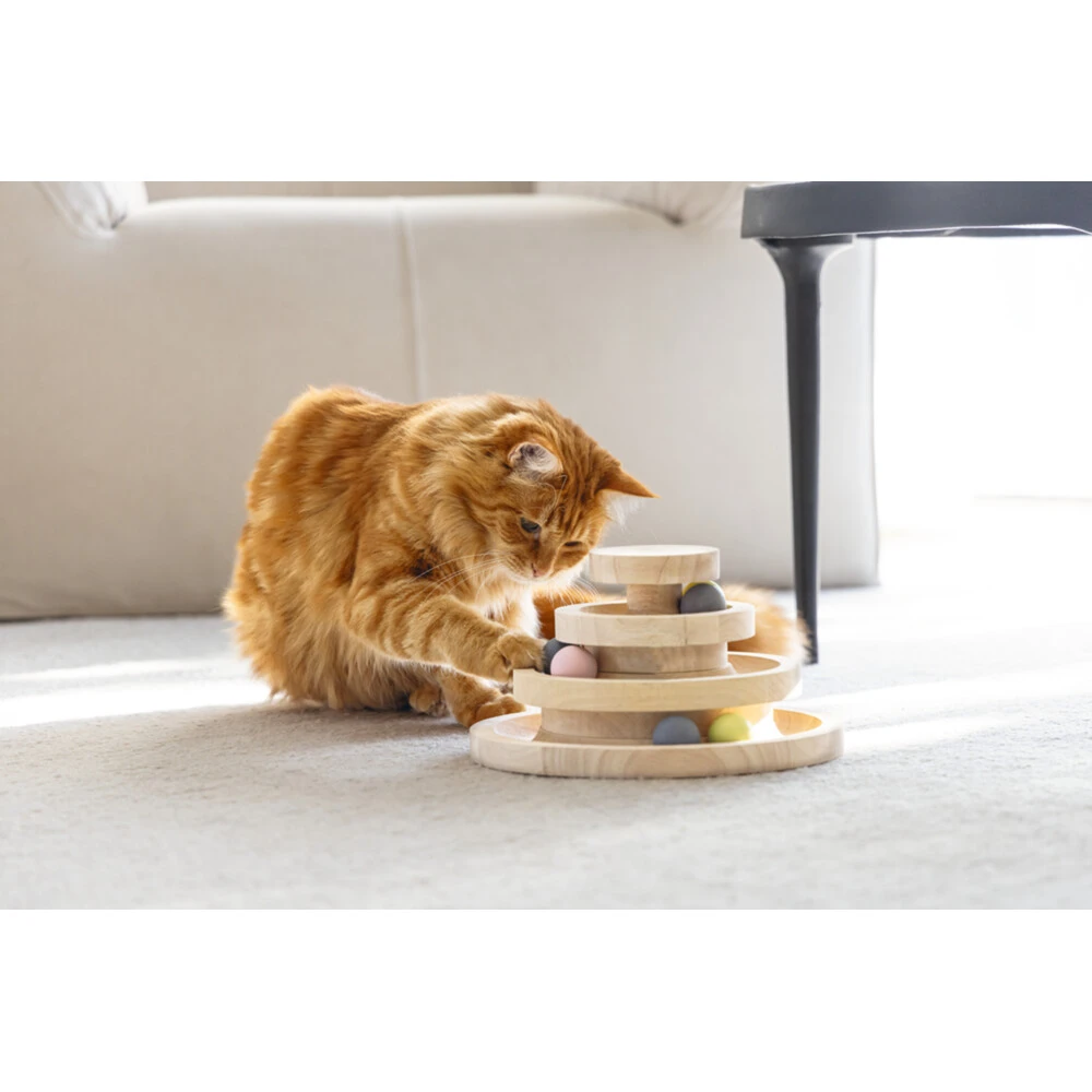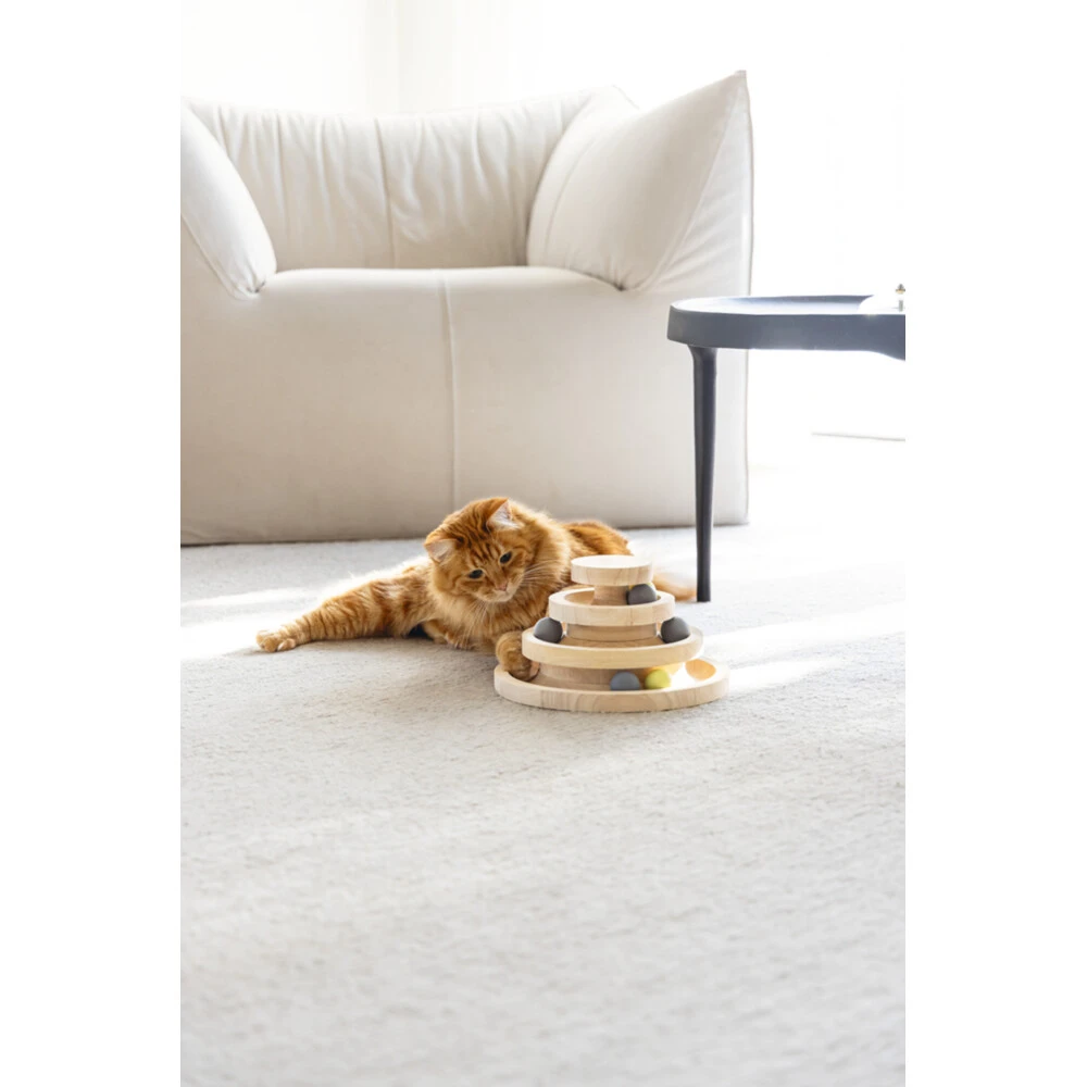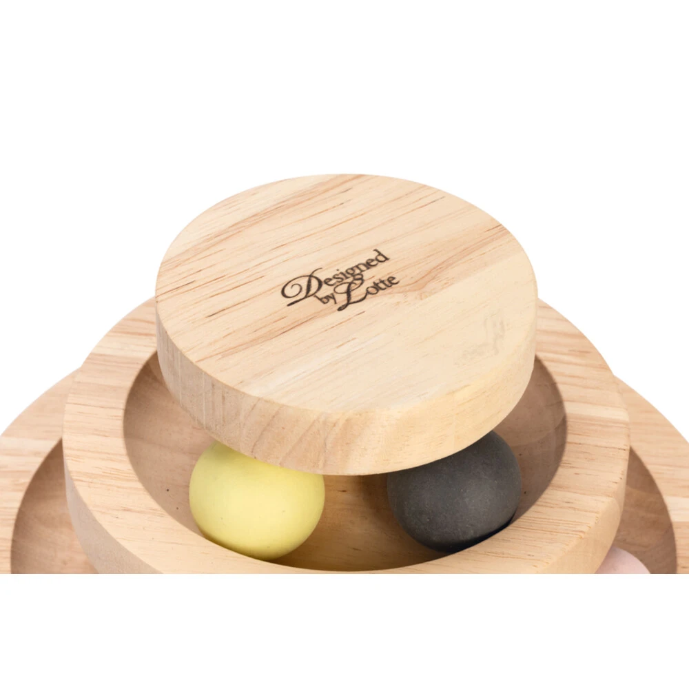 Designed by Lotte Speeltoren MiaKatten houden van spelen en kunnen hier vaak niet genoeg van krijgen. De Designed by Lotte Speeltoren Mia is het perfecte kattenspeelgoed. Deze speeltoren bevat maar liefst drie verdiepingen inclusief balletjes. Zodra jouw kat met zijn snuit of pootjes tegen de balletjes aantikt, zullen de balletjes door de gehele speeltoren gaan rollen. Jouw kat kan in zijn eentje met dit speelgoed spelen, maar samen spelen is natuurlijk ook mogelijk. Breng de balletjes met je ha