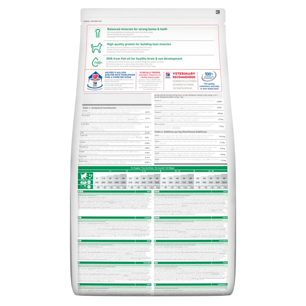Hillu0027s Science Plan Hondenvoer Puppy Large KipHillu0027s Science Plan Large Breed Puppy met Kip is speciaal gemaakt met een optimaal calciumgehalte voor gecontroleerde botgroei, een unieke ontwikkelingsbehoefte van pups van grote rassen. Geef ze de beste start van hun leven om hun volle potentieel te kunnen bereiken.Gebalanceerde mineralen voor sterke botten en tandenDHA uit visolie voor een gezonde ontwikkeling van hersenen en ogenHoogwaardige eiwitten voor sterke spieren