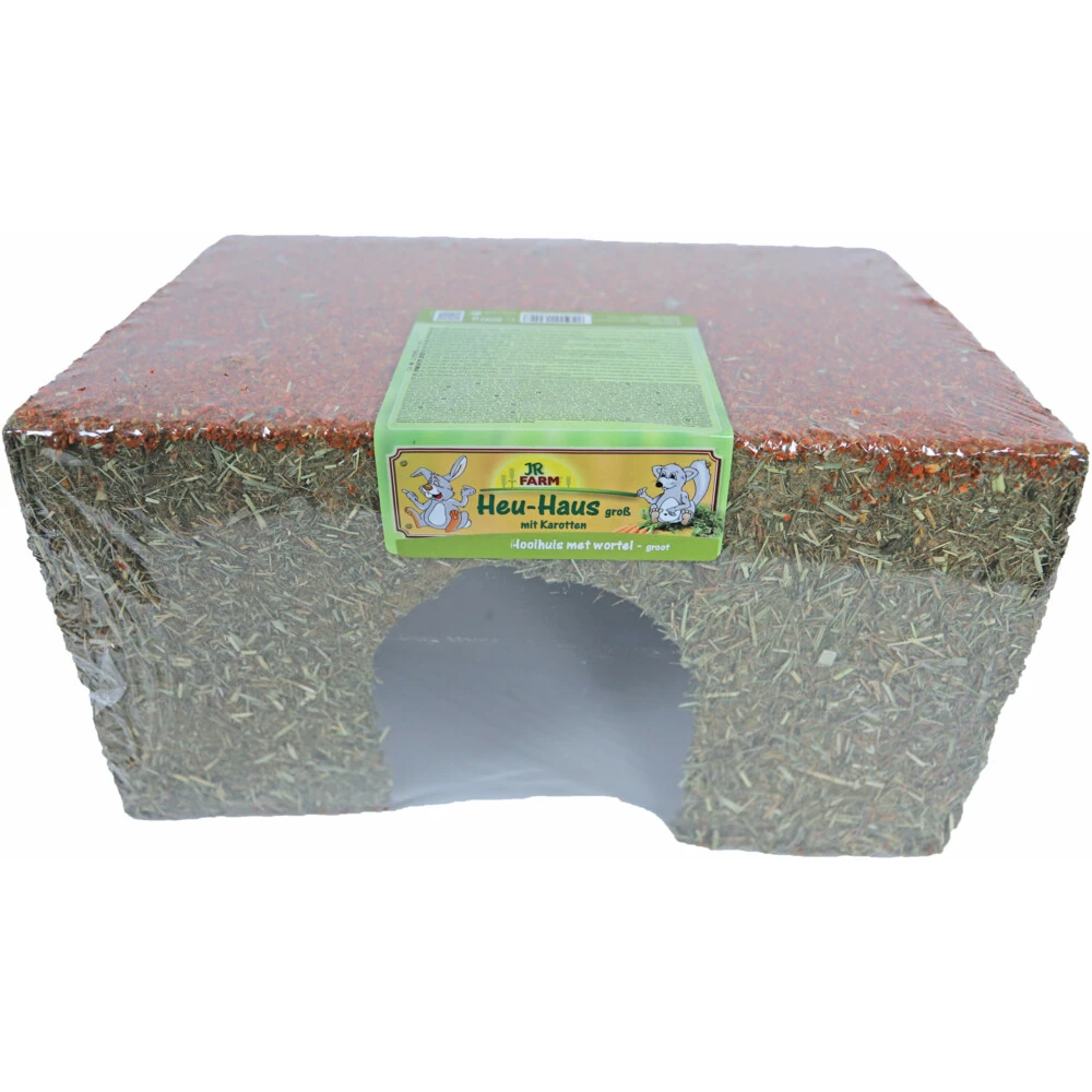 JR Farm Hooihuis Wortel Groot 650 gramIn het hooihuis van JR Farm kan jouw knaagdier alles doen wat het wilt: slapen, snacken, verstoppen, klimmen of knagen. Met dit hooihuis is alles mogelijk. Het dak is voorzien van gezonde worteltjes voor extra knaagplezier en het hele huis is gemaakt van 100% natuurlijke materialen. Het hooihuis is verkrijgbaar in drie verschillende maten: klein, middel en groot.Met dit hooihuis is alles mogelijkHet dak is voorzien van gezonde worteltjesGemaakt van 100% natu