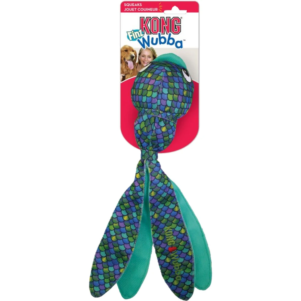 Kong Wubba Finz BlauwDe Kong Wubba Finz hebben een lange slappe staart die het makkelijk en extra leuk maakt voor de hond om mee te schudden en bevredigt zo de natuurlijke instincten. De Wubba is gemaakt met twee ballen binnenin die zorgen voor aantrekkelijk stuiteren. Samen met het piepen zorgt dat voor veel gezond en actief speelplezier. Deze vliegende vis is gemaakt om door de lucht te zweven en zo honden meer speelplezier te geven!Bevat 2 ballenPerfect voor interactieve trek- en apporteerspe