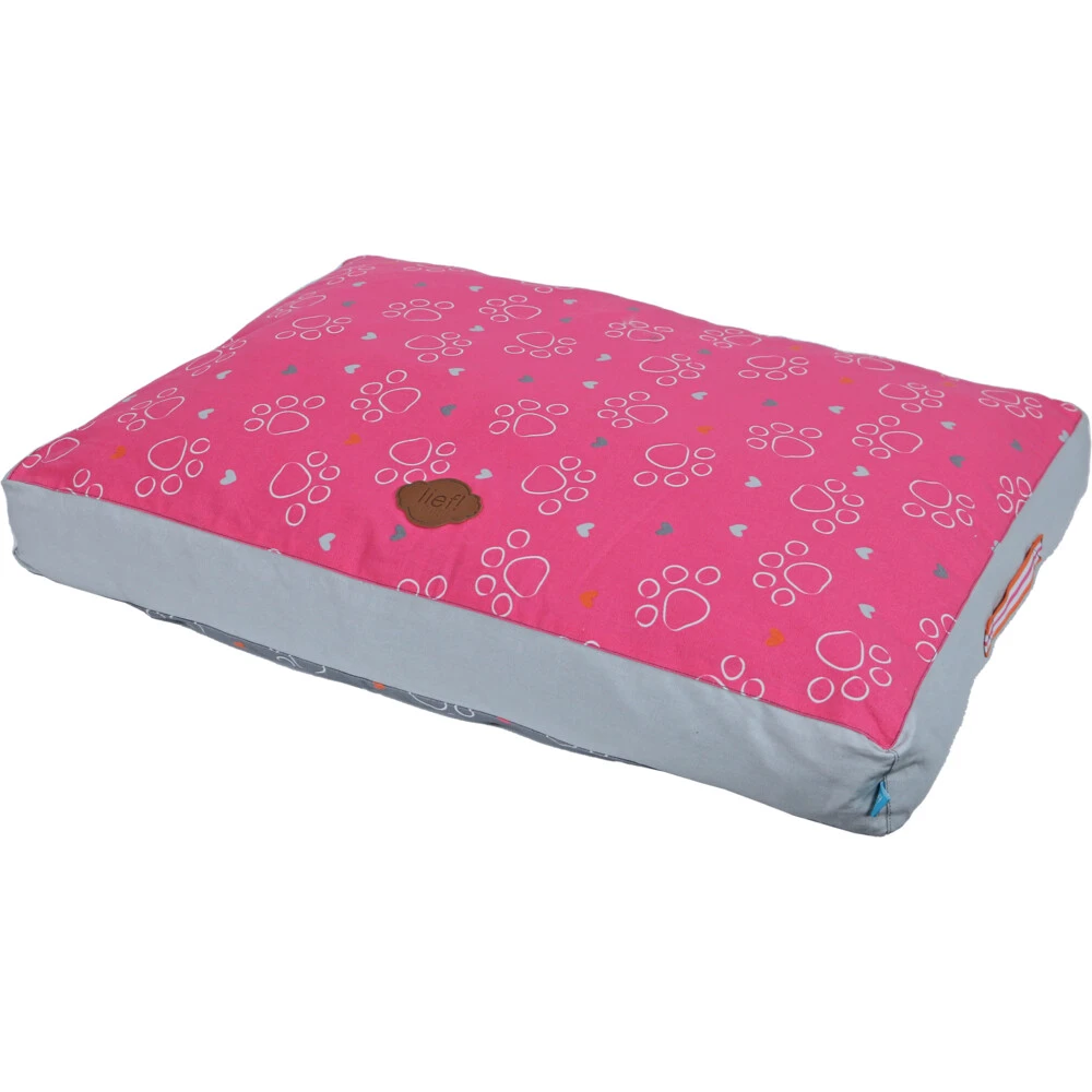 Lief! Loungekussen 2-zijdig Girlslief! Girls loungekussen 2-zijdig is een ligkussen voor honden waar ze heerlijk op kunnen liggen. Het kussen is roze aan de ene kant en donkergrijs aan de andere kant met een girls en poot print aan beide kanten. De mooie details maken dit kussen helemaal af, zoals de handgrepen aan de zijkant van het kussen. 2 kanten te gebruikenGoed gevuldMet handgrepen
