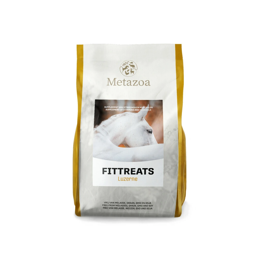 Metazoa Paardenvoer Fittreats LuzernePaardensnack vrij van melasse en granen. De snack is gemaakt van luzerne,lijnzaad,mineralen en premix. Premis is een mengeling van vitamines en mineralen. Bevat alle essentiële vitaminen en mineralenEen gezonde en lekkere beloningVrij van graan, soja, melasse en GMOGeperst in blokjes van 12 mmBestaat voor slechts 1,8% uit suiker