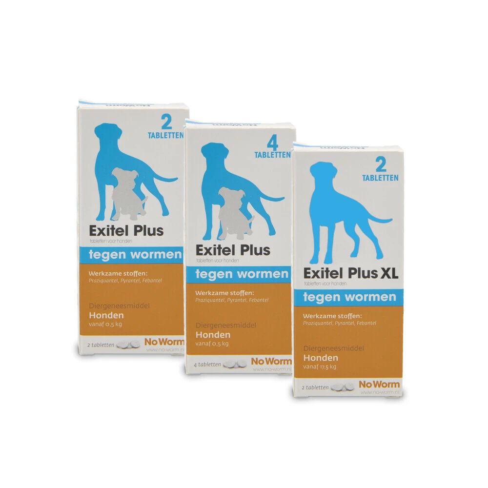 No Worm Exitel Plus Ontworming Tabletten Hond 35 – 50 kgNo Worm Exitel is een smakelijke ontwormingstablet tegen spoelwormen, lintwormen, haakwormen (hond) en zweepwormen (hond). Dit zijn de meest voorkomende wormen in Nederland. De tabletten hebben een vleessmaak. No Worm Exitel heeft dezelfde werking als Mansonil.Werkt tegen de meest voorkomende wormen,Deelbaar tablet voor nauwkeurige dosering,Geschikt voor collie-achtige honden,Smakelijke tablet,Eenmalige toediening per behandeling.