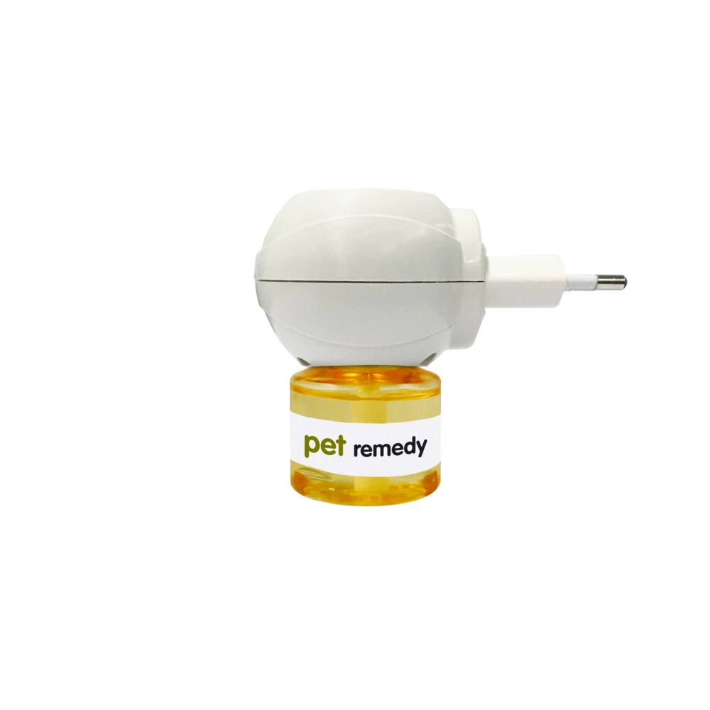 Pet Remedy Verdamper met NavullingDe Pet Remedy startset met verdamper zorgt voor rust en kalmte in huis. De Pet Remedy Startset bestaat uit een verdamper met vulling (40 ml) die tot 60 dagen werkt. Deze eenvoudig te gebruiken verdamper werkt binnen enkele minuten en dekt een oppervlakte tot 60 m². De verdamper is voordelig in gebruik; hij verbruikt slechts 5 watt. De navullingen verpakking, bevat 2x een vulling (40 ml) die tot 16 weken werkt. Dit product bevat geen feromonen.Werkt vrijwel
