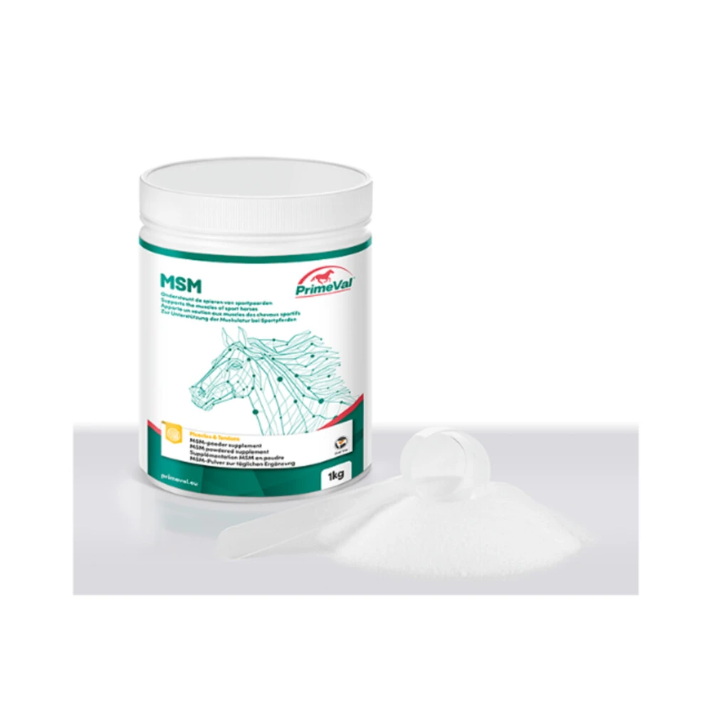 Primeval MSMPrimeVal MSM is een supplement dat 100% methylsulfonylmethaan-poeder (MSM) bevat. MSM bevat een organische vorm van zwavel die makkelijk door het lichaam wordt opgenomen. Zwavel speelt een belangrijke rol bij cruciale functies in het paardenlichaam. PrimeVal MSM ondersteunt de spieren van sportpaarden.Aanbevolen voor paarden die topprestaties leveren tijdens een wedstrijdseizoen of bij periodes van training of zware inspanningHet speelt een rol bij het behoud van sterke en soepele sp