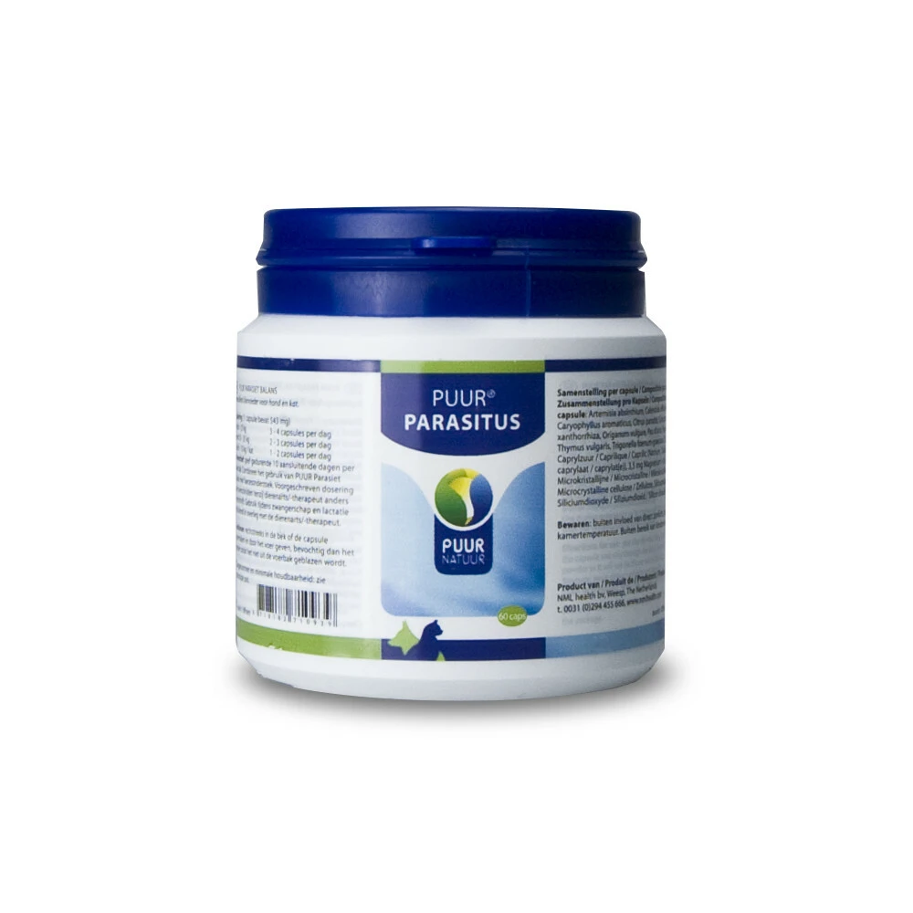 Puur Parasiet voor de juiste balans en gezonde darmenVerhoogt de weerstand tegen bacteriën en schimmels. Geschikt voor je kat, konijn of hond.Bij schimmels en parasietenWerkt eetlustopwekkend en wormverdrijvendMaakt het darmmilieu onaantrekkelijkVoor een goede opbouw van het maagdarmslijmvlies