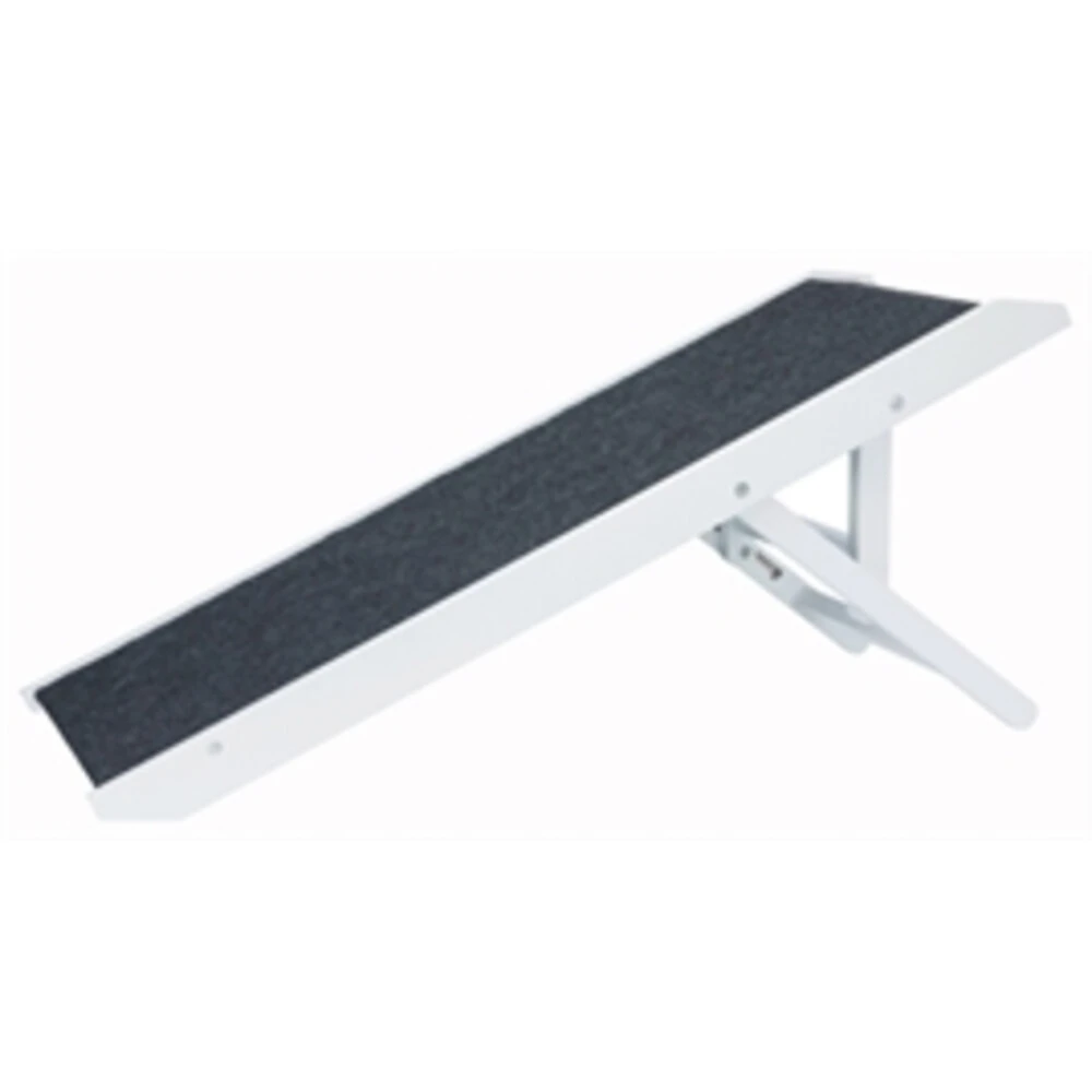Trixie Loopplank Verstelbaar Wit De loopplank van Trixie is gemaakt van kunststof met TPR loopvlakken, daarnaast zit er een slipvaste laag op de treden. De voetjes van de loopplank zijn ook voorzien van rubberen anti-slip voetjes zodat de loopplank niet verplaatst. De loopplank is geschikt voor binnen en buiten, bijv. om eenvoudiger op bed of sofa te kunnen klimmen of als hulp bij het in-/uitstappen in de auto.De loopplank is zeer aan te bevelen bij rug- en gewrichtsproblemen, het ontziet d